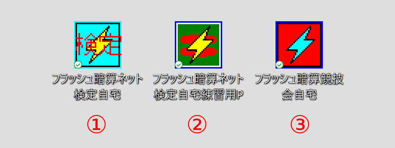 検定ソフト+練習ソフト+競技ソフトのインストールが完了すると、デスクトップに下記のアイコンが作成されます。(2026年1月現在)