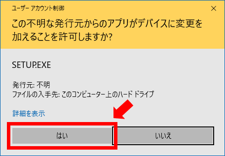 - 下記のメッセージが表示される場合には「はい」押してください。