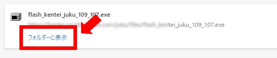 - ダウンロードが完了するとダウンロード済みのファイルリストが表示されますので、今回ダウンロードしたファイルの「フォルダーに表示」を押してください。