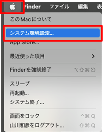 - デスクトップ左上のアップルメニューから「システム環境設定」を選択してください。