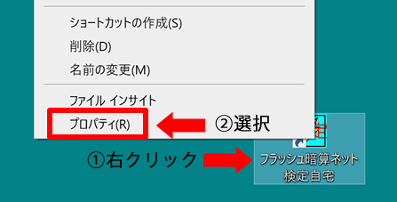 2回目からは普通に起動できるようになります。 - デスクトップにあるソフトのアイコンを右クリックしてプロパティを選択してください。