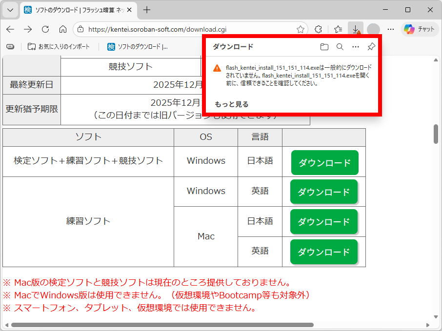 ダウンロードボタンをクリックすると確認メッセージが表示される場合があります。