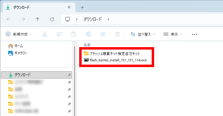 その後、「flash_kentei_install_151_151_114.exe」ファイルをダブルクリックして起動します。