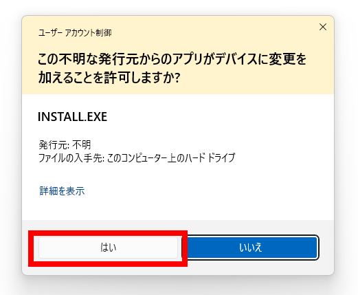- 変更の許可を確認する画面が表示されましたら「はい」をクリックしてください。
