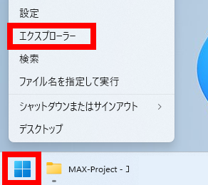 - スタートメニューを右クリックして「エクスプローラー」を選択します。