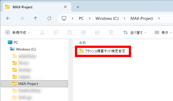 - Cドライブにある「MAX-Project」フォルダを開きます。