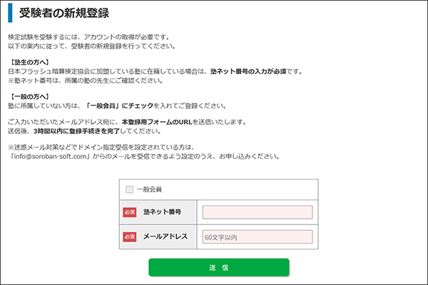 フラッシュ暗算の検定試験を受験するためには、アカウントの取得が必要です。